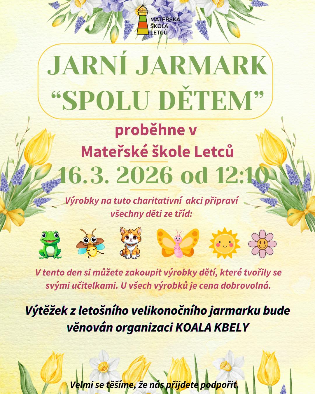 Přijďte podpořit děti, udělat si radost jarní dekorací a užít si milé odpoledne.