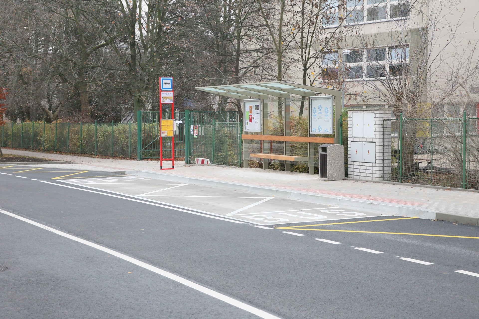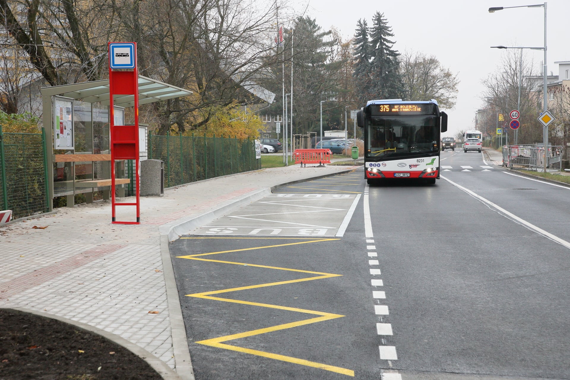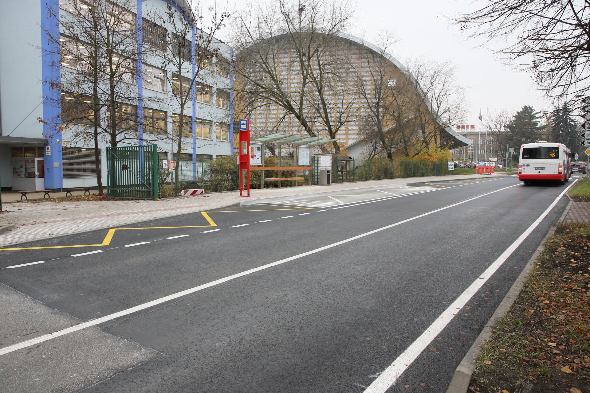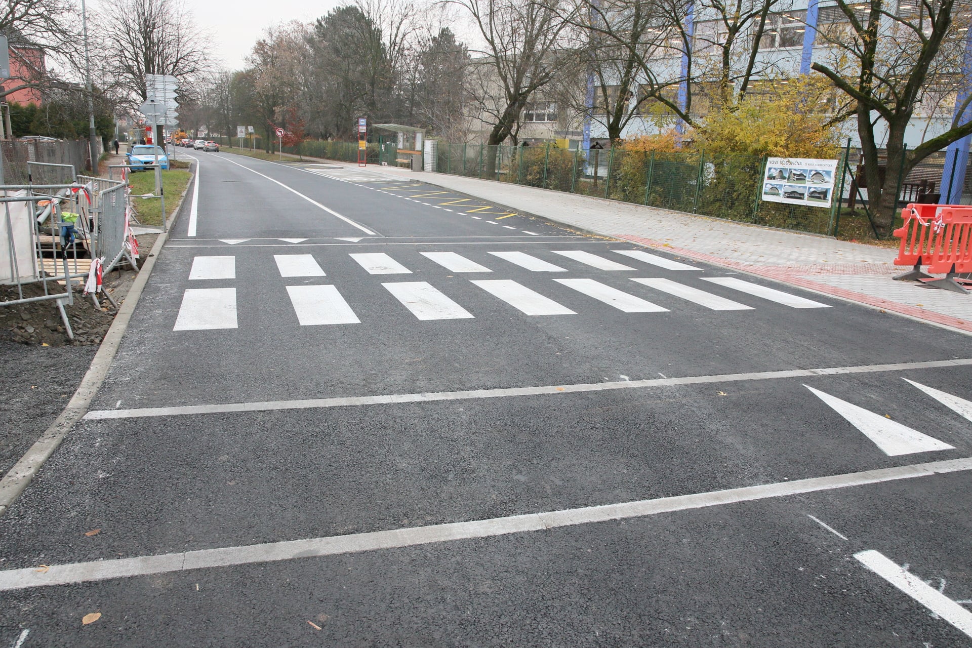 Při otevření nové školní budovy se radnice snažila doplnit i prvky pro bezpečnost dětí. Jsou zde přechody pro chodce, radar, donedávna tu byly montované polštáře, ráno na dvou přechodech hlídá městská policie. Zpomalovací polštáře sice pomohly, ale bylo to dočasné řešení, které rušilo místní obyvatele hlukem. Městská část proto usilovala o řešení trvalé.